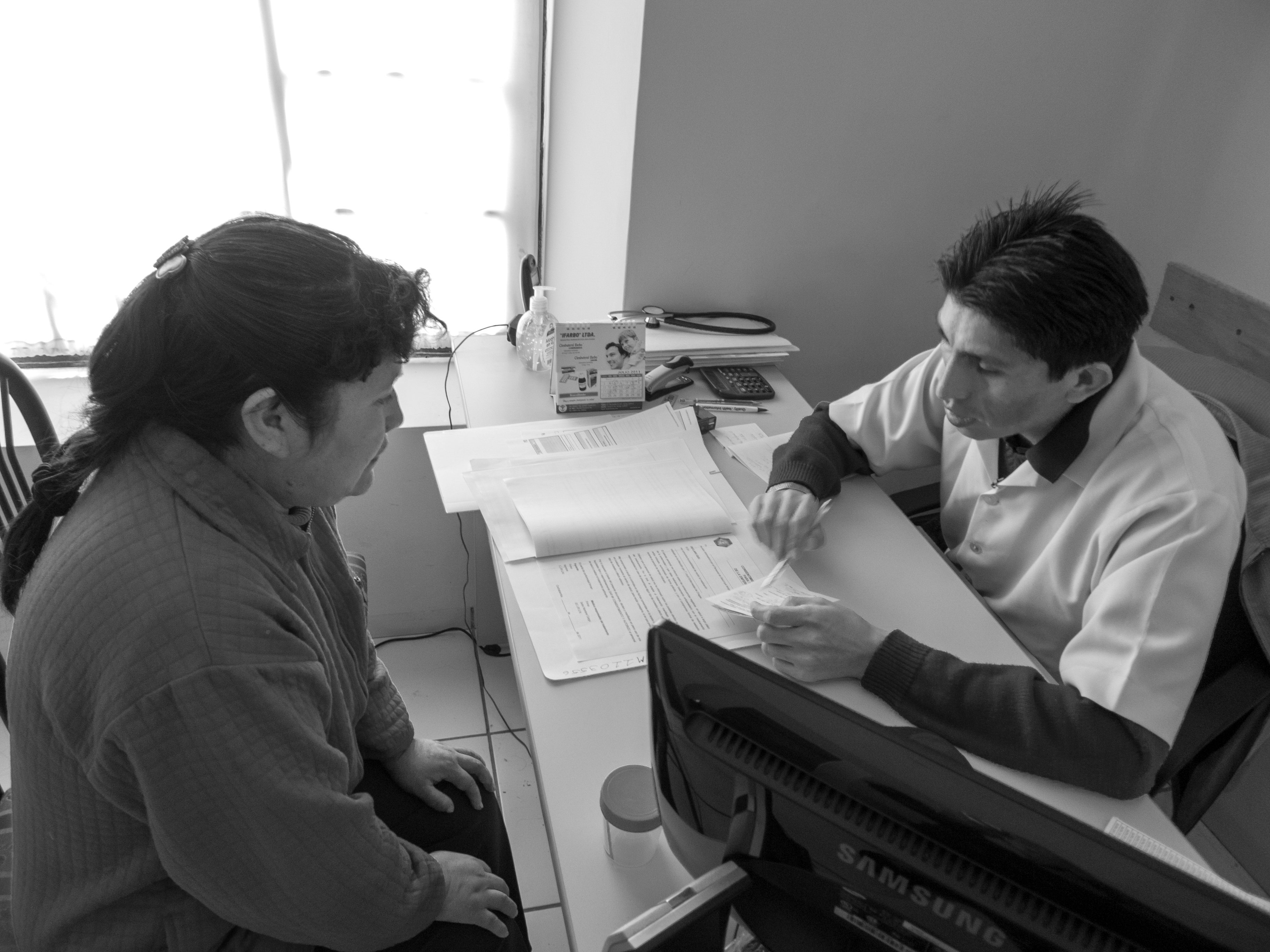 - atendimento bolívia dndi doença de chagas doenças negligenciadas drugs for neglected diseases initiative hospital iniciativa medicamentos para doenças negligenciadas mal de chagas mulher médico paciente plataforma chagas preto e branco universidad mayor de san simón pb chagas consulta consultório acervo joão roberto ripper